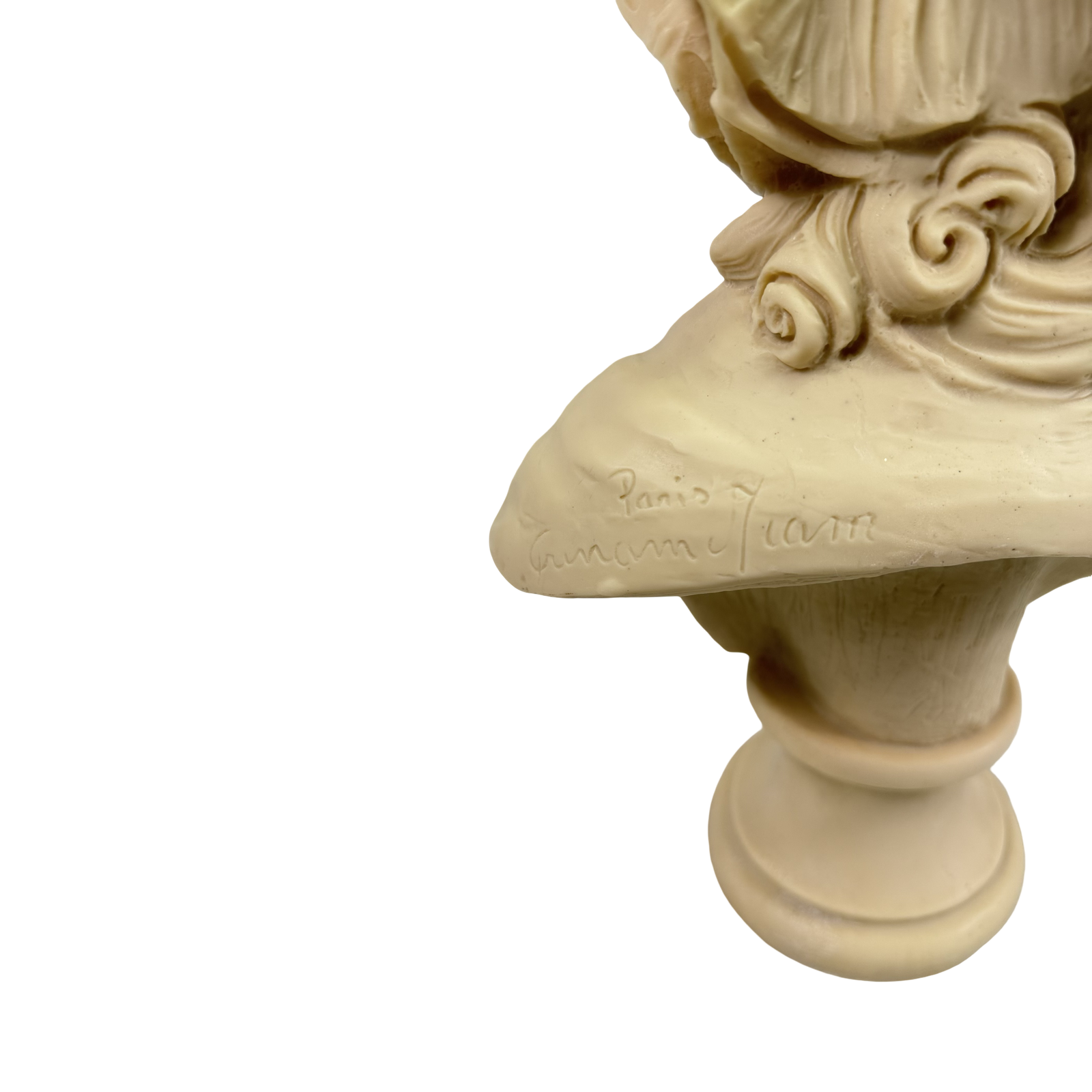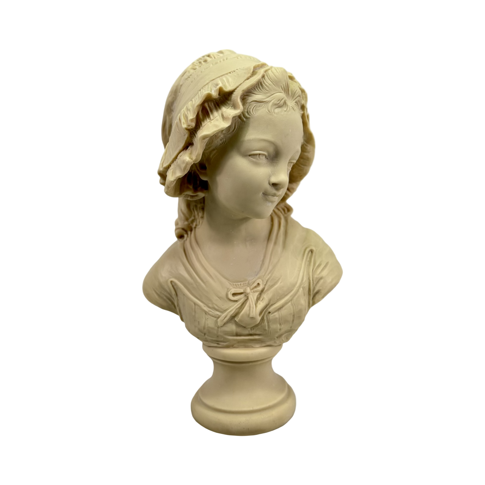 French plaster bust of a young French girl from the country signed by Grinam Niam, Paris. C. early 19th century.