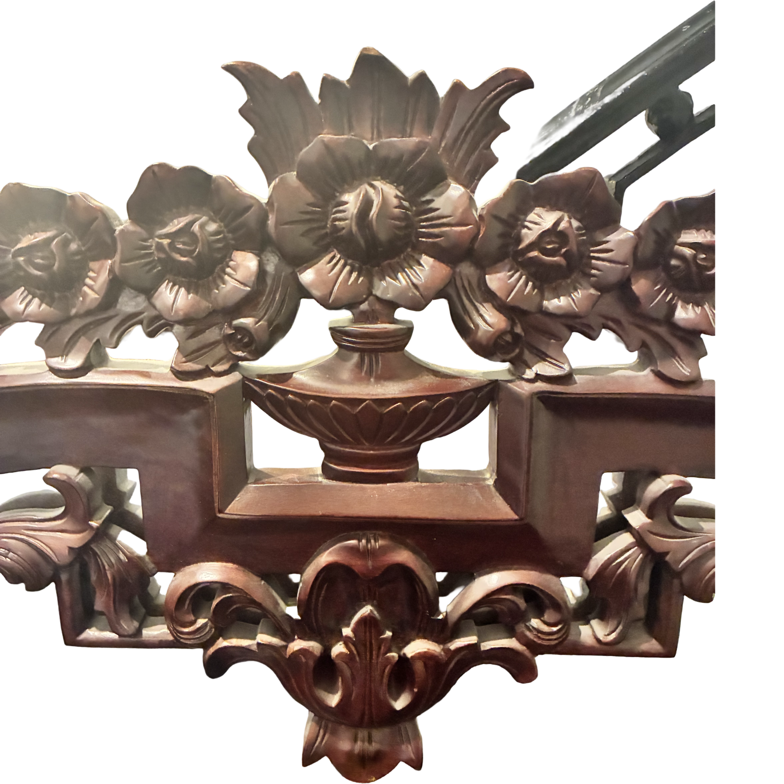The finish is a brownish mahogany.