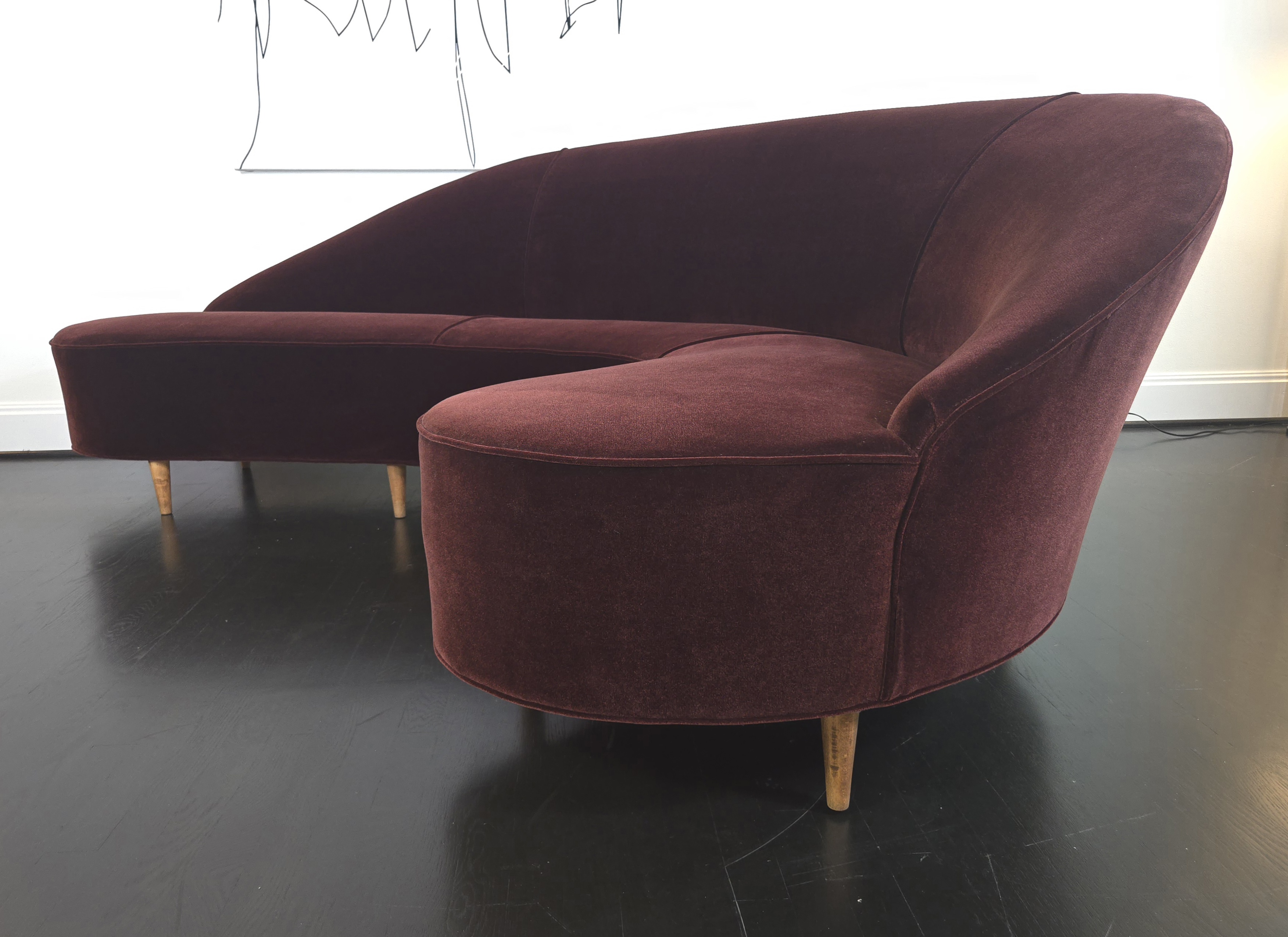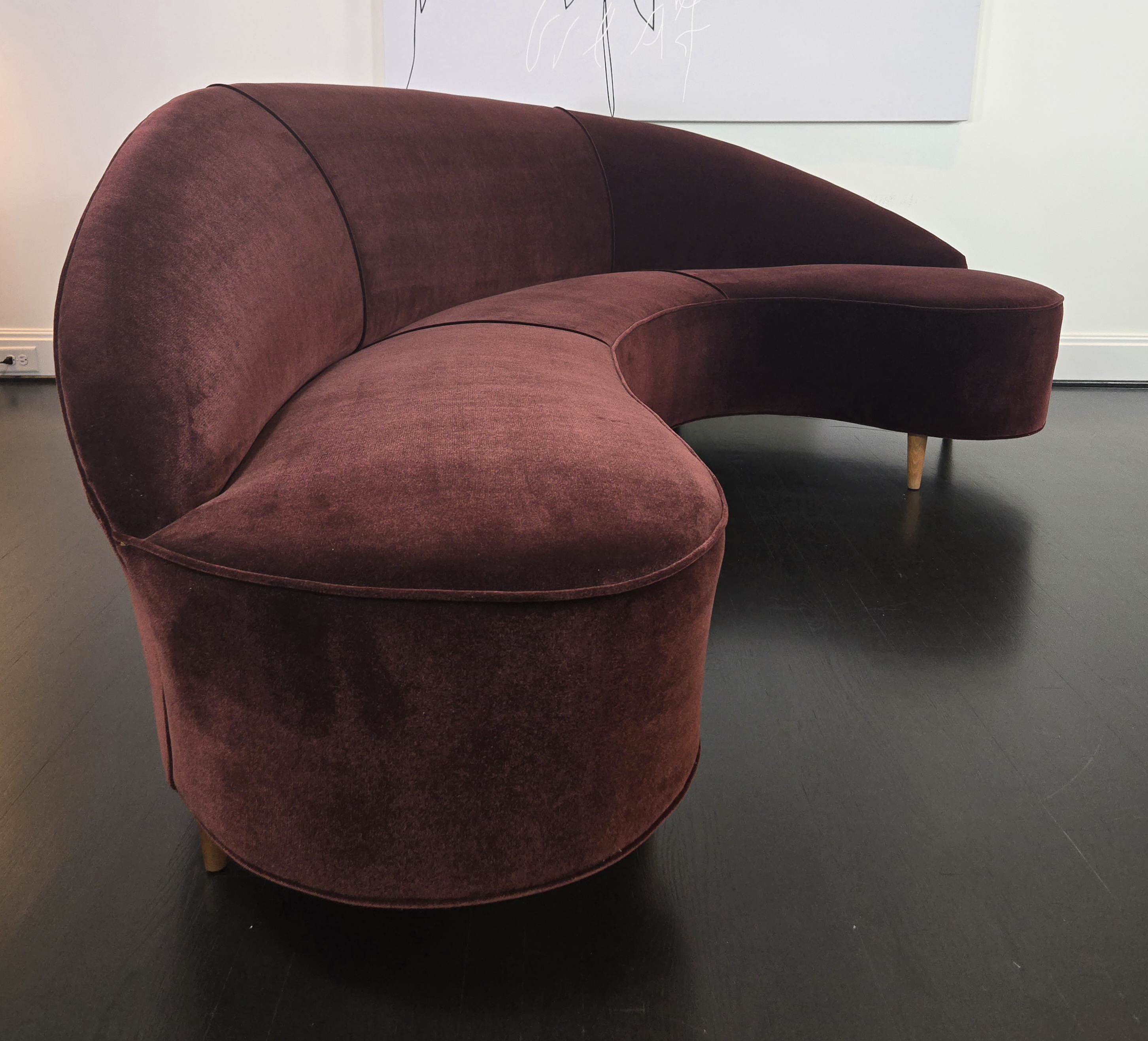 With walnut legs brand new luxurious Oxblood Velvet, this sofa is a knockout.