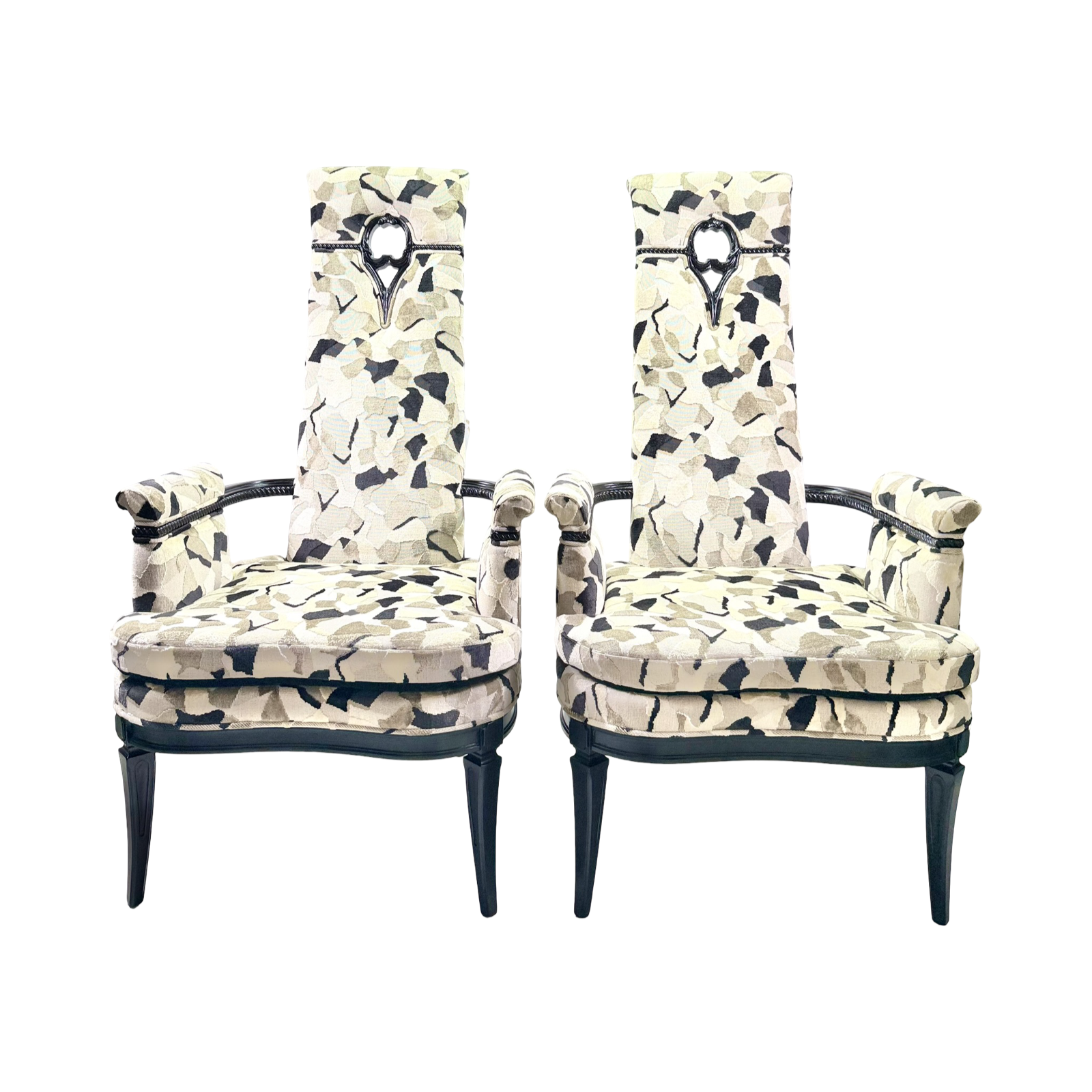 Glamorous pair of Vintage 1960's Hollywood Regency chairs with new fabric.